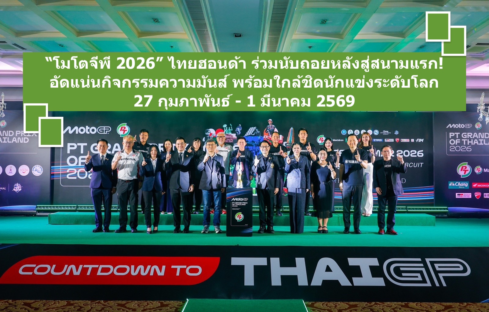 "ไทยฮอนด้า" ร่วมงานแถลงข่าวการนับถอยหลังสู่การแข่งขันรถจักรยานยนต์ทางเรียบชิงแชมป์โลก โมโตจีพี 2026 ในรายการ "PT Grand Prix of Thailand 2026” (พีที กรังด์ปรีซ์ ออฟ ไทยแลนด์) ในศึกการแข่งขันระดับโลกที่ สนามช้าง อินเตอร์เนชั่นแนล เซอร์กิต .บุรีรัมย์ ระหว่างวันที่ 27 กุมภาพันธ์-1 มีนาคม 2569 พร้อมเชิญชวนแฟนชาวมอเตอร์สปอร์ต ร่วมเปิดประสบการณ์ความมันส์ระดับโลกไปด้วยกัน เมื่อวันพฤหัสบดีที่ 8 มกราคม 2569 ที่ผ่านมา สโมสรราชพฤกษ์