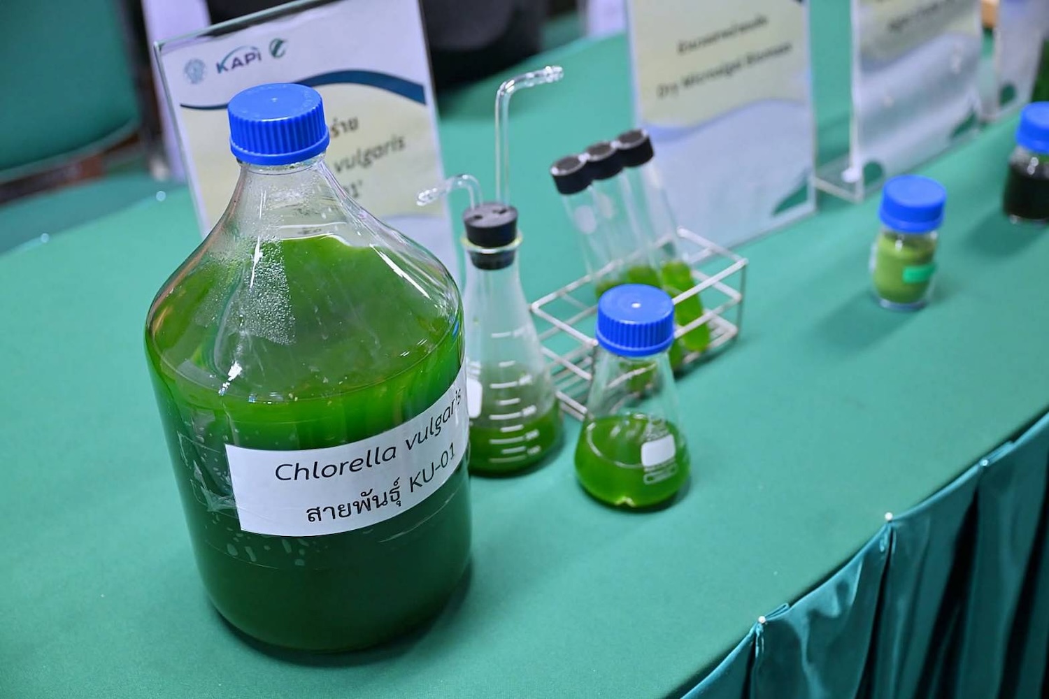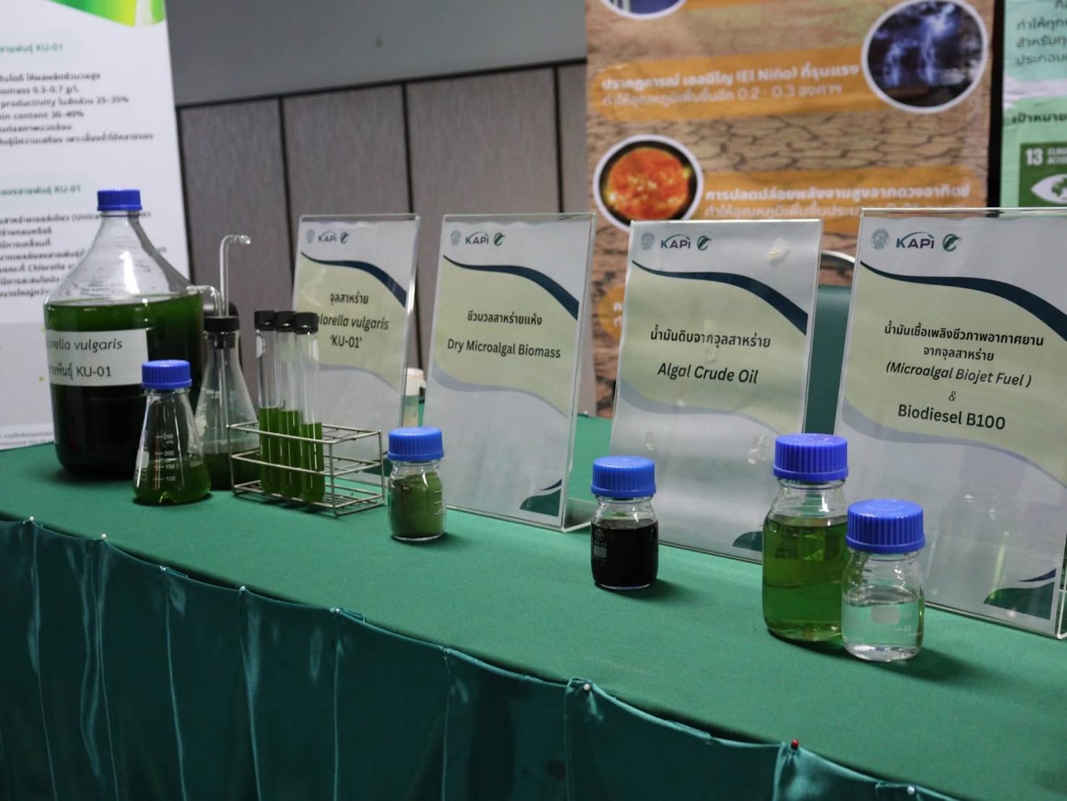 สถาบันค้นคว้าและพัฒนาผลิตผลทางการเกษตรและอุตสาหกรรมเกษตร มหาวิทยาลัยเกษตรศาสตร์ (KAPI) ร่วมกับบริษัท แอดวานซ์ไบโอคาร์บอน จำกัด (ABC) ประกาศความสำเร็จในการพัฒนาสายพันธุ์จุลสาหร่าย Chlorella vulgaris KU-01 ซึ่งมีศักยภาพสูงในการเป็นวัตถุดิบโปรตีนทางเลือกสำหรับอาหารสัตว์ และวัตถุดิบสำคัญในการผลิตเชื้อเพลิงชีวภาพ (Biofuels) ทั้งน้ำมันไบโอดีเซล (B100) และเชื้อเพลิงอากาศยานยั่งยืน (SAF)