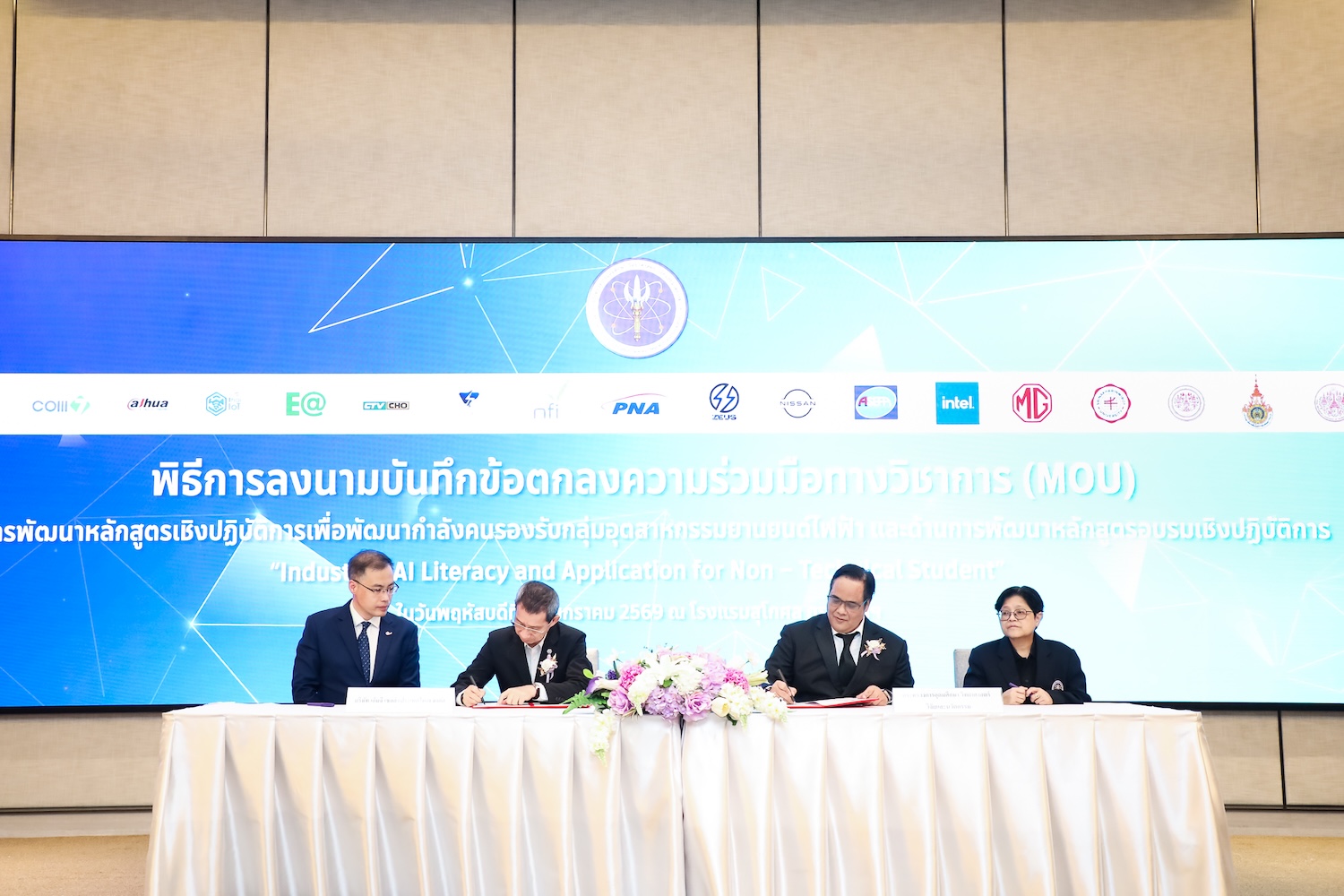 โดยพิธีดังกล่าวได้รับเกียรติจาก ดร.พันธุ์เพิ่มศักดิ์ อารุณี รองปลัดกระทรวงการอุดมศึกษา วิทยาศาสตร์ วิจัยและนวัตกรรม (อว.) พร้อมด้วยผู้บริหารจากภาคเอกชนชั้นนำด้านเทคโนโลยี ดิจิทัล และอุตสาหกรรมยานยนต์ไฟฟ้า รวมถึงผู้บริหารจากสถาบันอุดมศึกษาชั้นนำของประเทศ เข้าร่วมเป็นสักขีพยานและร่วมลงนามความร่วมมืออย่างพร้อมเพรียง