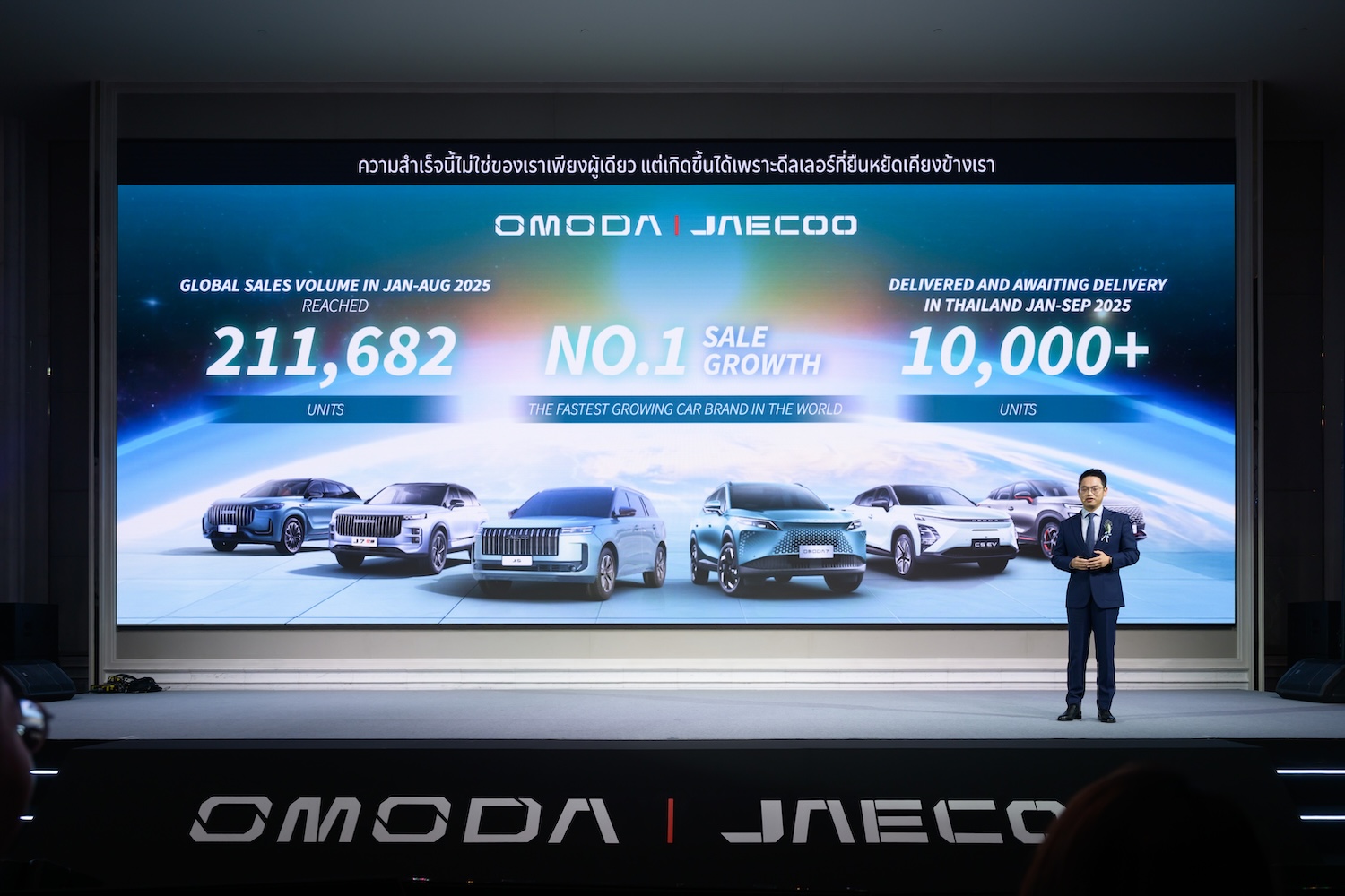 คุณบิล จาง ผู้อำนวยการบริหารแบรนด์ OMODA & JAECOO ประเทศไทย กล่าวว่า “ประเทศไทยถือเป็นตลาดหลักที่มีความสำคัญของกลุ่มเชอรี่ในภูมิภาคเอเชียตะวันออกเฉียงใต้ ผลการดำเนินงานที่โดดเด่นในรอบปีแรกนี้ยืนยันว่าเราเดินมาถูกทิศทาง โดยเฉพาะการนำเสนอผลิตภัณฑ์ที่ผสานทั้งนวัตกรรมเทคโนโลยีล้ำสมัย การออกแบบที่โดดเด่น และประสิทธิภาพการใช้งานที่ตอบโจทย์ความต้องการของผู้บริโภคชาวไทยได้อย่างลงตัว”