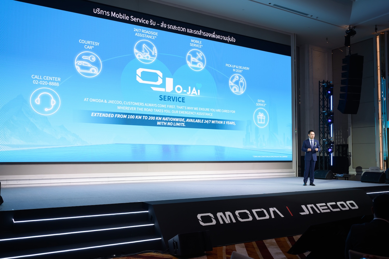 เพื่อตอกย้ำความแข็งแกร่งของแบรนด์และสร้างความมั่นใจให้กับลูกค้า OMODA & JAECOO ได้ยกระดับมาตรฐานการบริการหลังการขายภายใต้ชื่อ “OJ O-Jai” (โอเจ โอใจ) ครอบคลุมทุกความต้องการ เริ่มจากศูนย์บริการลูกค้า (Call Center) ที่พร้อมให้ความช่วยเหลือตลอด 24 ชั่วโมง 7 วัน ผ่านช่องทางโทรศัพท์หมายเลข 02 020 8888 พร้อมบริการรถสำรอง (Courtesy Car) สำหรับกรณีที่รถมีปัญหาที่เกิดจากระบบ และบริการช่วยเหลือฉุกเฉินบนท้องถนน (Roadside Assistance) ฟรีในระยะทาง 200 กิโลเมตร (ขยายระยะจากเดิม 100 กิโลเมตร) ด้วยมาตรฐานการเข้าถึงภายใน 30 นาทีในเขตกรุงเทพฯ และ 45 นาทีในต่างจังหวัด นอกจากนี้ ยังมีบริการ Mobile Service ที่พร้อมให้บริการถึงที่สำหรับงานซ่อมบำรุงเบื้องต้น และภายในปีหน้าจะเพิ่มบริการรับ-ส่งรถ (Pick-Up & Delivery) สำหรับลูกค้าที่ไม่สะดวกเดินทาง โดยทั้งสองบริการนี้จำกัดการใช้งาน 2 ครั้งต่อปี ภายใต้เงื่อนไขที่กำหนด